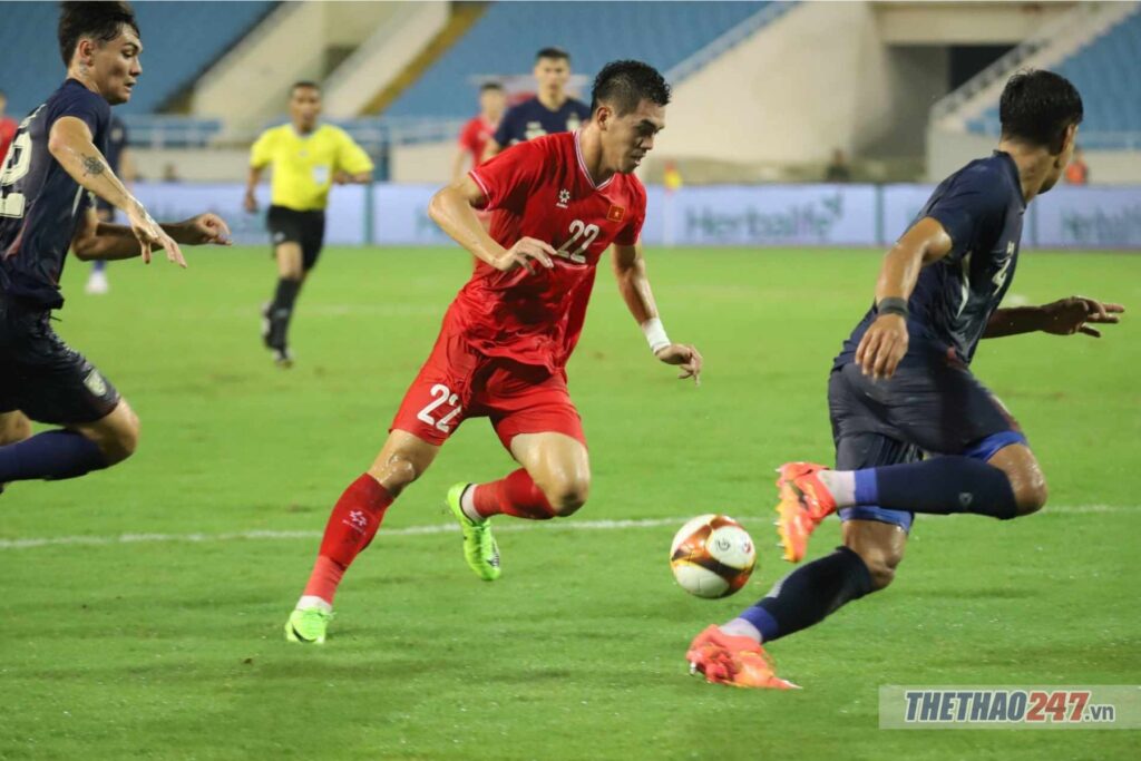 ĐT Thái Lan ra sân với nhiều cầu thủ trẻ đúng như dự đoán. Tuy vậy, đoàn quân của HLV Masatada Ishii vẫn tạo được thế trận nhỉnh hơn ĐT Việt Nam. Họ bị thủng lưới trước ở phút thứ 21 sau pha lập công của Tiến Linh. Thế nhưng, chỉ 5 phút sau đó, ĐT Thái Lan đã tìm được bàn gỡ. Tiền đạo Suphanat là người đã điền tên lên bảng tỷ số, anh đệm bóng dễ dàng từ pha phối hợp đá phạt.