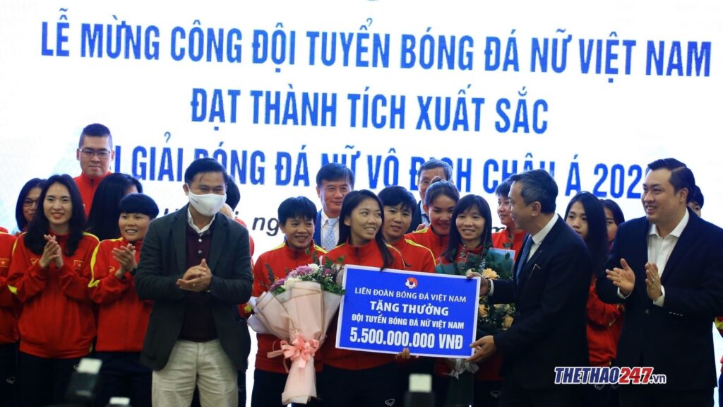 Sáng 11/2, Liên đoàn bóng đá Việt Nam tổ chức Lễ mừng công đội tuyển bóng đá nữ Quốc gia Việt Nam tại trụ sở VFF. Cũng trong buổi lễ, đã có rất nhiều các phần thưởng giá trị được trao tặng cho thầy trò HLV Mai Đức Chung. Cụ thể,: